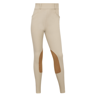 A Calça LeMieux Side Zip Hunter Jovem Cavaleiro apresenta um corte de cintura média com fecho lateral, proporcionando um perfil frontal elegante e liso, ideal para a disciplina Hunter.