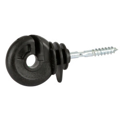 Isolador compacto com base larga, ideal para instalação com parafuso 441363/011. Fabricado em plástico resistente com rosca de madeira e suporte galvanizado contínuo de Ø 5,3 mm.