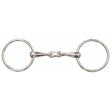 A dupla rutura é mais suave na boca do cavalo. Os anéis são grandes.Aço inoxidável.Tamanho dos canhões: 16 mm.Tamanho dos anéis: 80 mm.