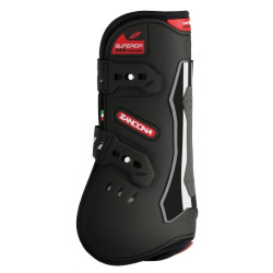 As Guétras Superior Air Zandona são caneleiras de alto desempenho, 100% fabricadas em Itália, desenvolvidas para o salto de obstáculos. Combinam proteção avançada contra impactos no menudilho e parte da cana, excelente ventilação e suporte tendíneo otimizado, para que o cavalo execute com segurança e conforto em sessões exigentes.