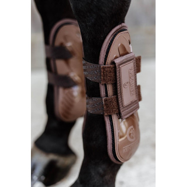 Com um formato anatómico cuidadosamente desenhado, as guêtres adaptam-se perfeitamente à perna do cavalo, proporcionando um ajuste seguro e confortável. Esta estrutura favorece a mobilidade natural do animal, sendo ideal para disciplinas como salto, concurso completo e dressage. A zona de flexão é reforçada com uma inserção suave de borracha natural, minimizando o atrito e prevenindo lesões por fricção. Adicionalmente, a parte interior conta com uma camada extra de TPU, aumentando a resistência ao desgaste diário.