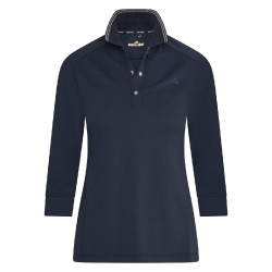 Polo em tecido respirável e de secagem rápida, garantindo frescura e comodidade durante todo o dia. Corte regular com gola em lurex e fecho com botões de pressão metálicos.